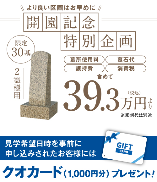 全ての区画が永代供養付き、継承者のいない方でもご購入いただけます。