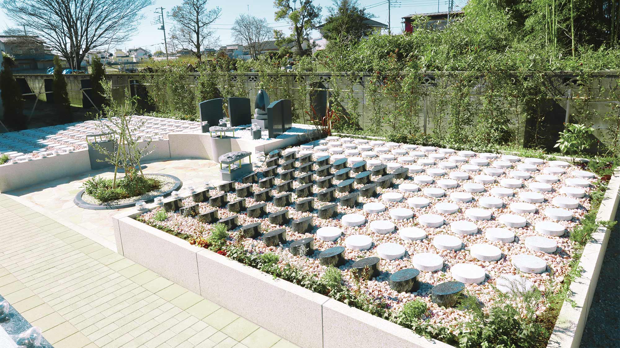 鷲宮駅よりお車で約5分。永代供養に対応した、明るく開放的な霊園です。