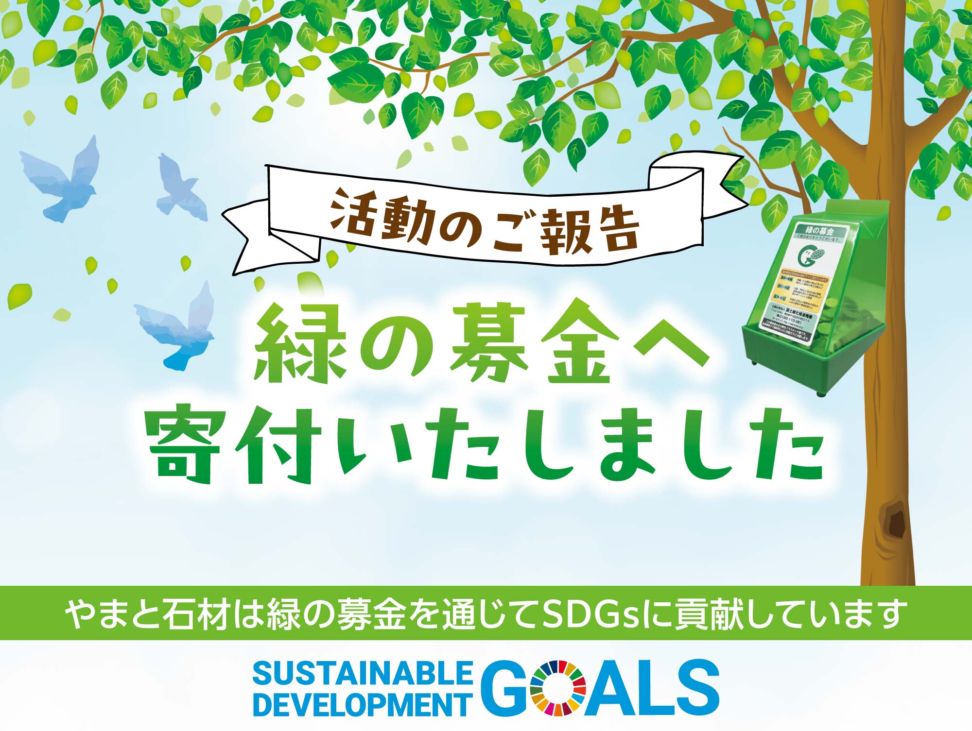 やまと石材は社会に幅広く貢献する企業を目指し、本年度も引き続き、緑の募金箱を設置しています。利益を優先するだけでなく、コンプライアンスを徹底し、健全な事業活動を通じて全てのステークホルダー(従業員とその家族・お客様・ビジネスパートナー・地域社会など)を大切に想い、また信頼され、持続可能な社会の発展に継続的な貢献をしてまいります。