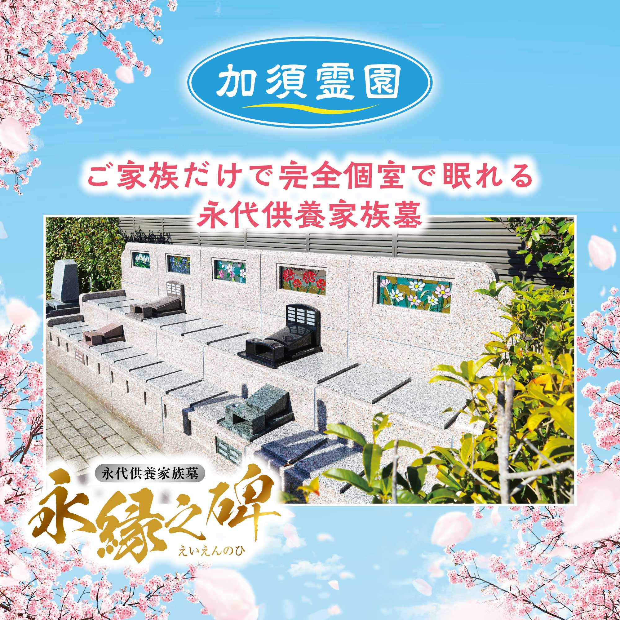 加須霊園(埼玉県加須市南大桑3225)に新しく、永代供養家族墓「永縁之碑(えいえんのひ)」が誕生しました。
